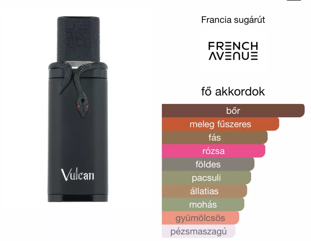 A French Avenue Vulcan Black Friday Edition sötét, fűszeres–bőrös karakterével azonnal magával ragadó, ünnepi hangulatot teremt. A nyitányban a sáfrány és a fahéj parázsló fűszeressége találkozik az alma ropogós, frissességével, így élénk és lendületes első benyomást kelt.