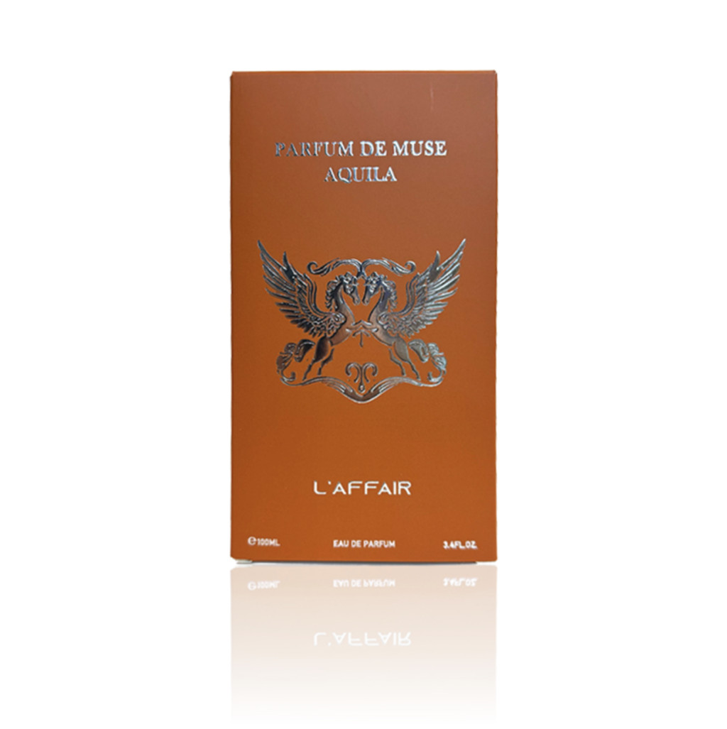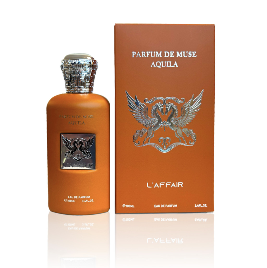 A L’affair Parfum De Muse Aquila 100ml Férfi Dubai Parfüm egy zseniális érzéki, édes illat. Eau de Parfümünk Fej jegyében a Friss Bergamot és a csábító Narancsvirág pulzálnak Dubai parfümünk első akkordjában. Titokzatos illat harmónia érkezik L’affair Parfum De Muse Aquila 100ml Férfi Dubai Parfümünk közepében. A bourbon Vanília gazdag illata ömlik bele a ragacsos Borostyán balzsam ölelésébe. Parfümünk a bőrön, úgy tárja fel az orientális összetevők sorát amik tökéletes harmóniában hullámzanak. Alap akkordjában a Guajakfa és a Praliné adják meg arab parfümünk édes intenzív illatát. A Pézsma lágy simogatása együttesen az Ámbra fás fuvallatával alkotnak egy hipnotikus hosszan tartó aurát Dubai Parfümünk lecsengésében. L’affair Parfum De Muse Aquila 100ml Férfi Dubai parfümünk viselője magabiztosan emelkedik ki a tömegből.