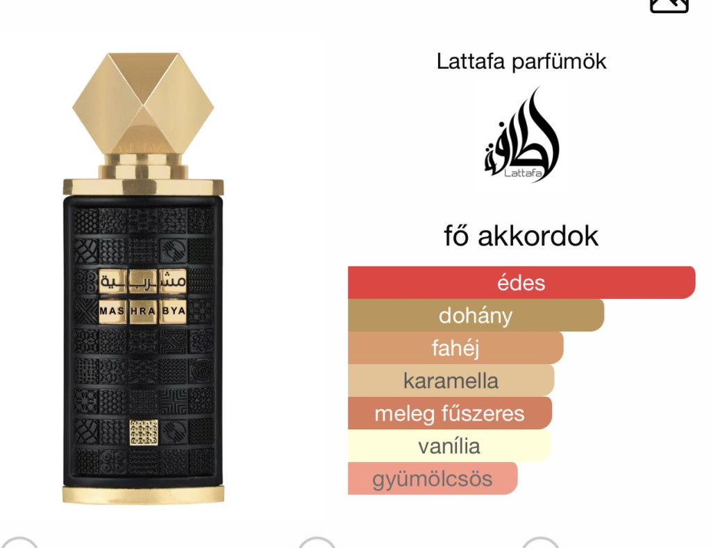 A Lattafa Mashrabya egy 2024-ben megjelent uniszex parfüm, amely a keleties–vaníliás illatvilág modern értelmezését kínálja. Összetett, mégis harmonikus karaktere egyszerre édes, füstös és kifinomultan érzéki – akár egy kortárs újragondolása egy jól ismert niche illatnak.