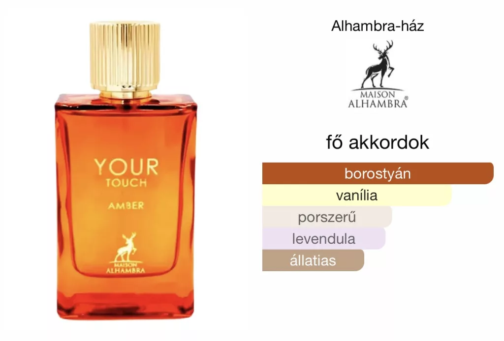 Esti viselethez vagy a hűvösebb évszakokhoz tökéletesen illő, valódi bókmágnes. Erőteljes, addiktív és könnyedén vonzó – a Maison Alhambra Your Touch Amber egy mély, meleg és texturált illat, amelyet azoknak készítettek, akik tartós benyomást hagynak maguk után. Ez a kontrasztok szimfóniája: lágy és merész, édes és fűszeres, sima és főleg ámbrásan édes!